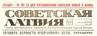 «Советская Латвия» — ежедневная газета на русском языке, орган ЦК КПЛ, Верховного Совета и Совета Министров Латвийской ССР, с 1990 года орган ЦК Компартии Латвии. Ликвидирована решением Верховного Совета Латвийской республики о запрете деятельности Коммунистической партии.