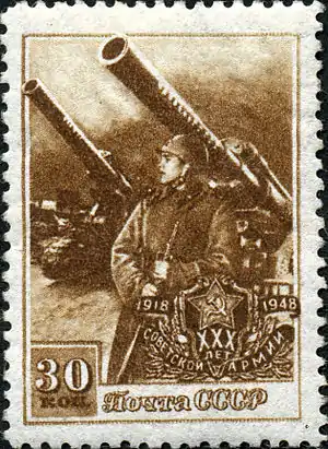 - Серия почтовых марок, 1948 год: 30 лет Советской Армии