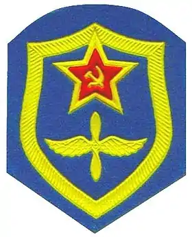 Кокарда с эмблемой на шапку-ушанку и фуражку для повседневной формы одежды офицеров авиации и ВДВ СА Вооружённых Сил Союза ССР, 1969 — 1991 годов.