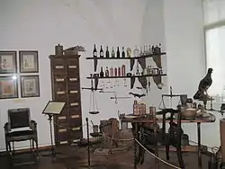Двухэтажное здание. Памятник архитектуры 17-18 веков. Первая на территории Беларуси аптека была основана в 1687 году. Каменное здание было построено в 1709 году, а в 1763 был достроен второй этаж. Здание почти постоянно выполняло первоначальную функцию — аптеки. Только после 1944 года до начала 90 гг. 20 в. в здании располагался салон мебели. Сейчас в здании также располагается аптека, медицинский музей, со стороны двора — магазин религиозных книг.