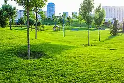 Открытие Центрального парка состоялось в мае 2019 года. Площадь парка составляет 20 гектаров. В парке посажено более 2100 деревьев 19 видов и свыше 137 тысяч цветов и кустарников. На территории парка находятся 2 кафе и 7 площадок для отдыха и игр[23]. В 2021 году начались работы по расширению парка. Территория между улицами Мирзааги Алиева и Башира Сафароглу засаживается деревьями, создаются прогулочные полосы[24].