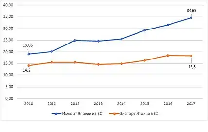 - Увеличение экспорта ЕС в Японию на 13,2 %, а импорта на 23,5 %[35];
