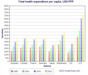- The U.S. Healthcare System: The Best in the World or Just the Most Expensive? (недоступная ссылка). University of Maine. Дата обращения: 23 июня 2017. Архивировано 9 марта 2007 года.