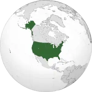 Соединённые Шта́ты Аме́рики (англ. The United States of America [ði juˌnaɪtɪd ˌsteɪts əv əˈmerɪkə]), сокращённо США (англ. USA), или Соединённые Шта́ты (англ. United States, U.S., в просторечии — Аме́рика) — государство в Северной Америке. Площадь — 9,5 млн км²[* 3][5] (4-е место в мире). Население — чуть более 333 млн человек (2021, оценка; 3-е место в мире). США имеют федеративную форму устройства, административно состоят из 50 штатов и федеральный округ Колумбия; в их подчинении также находится ряд островных территорий (Пуэрто-Рико, Виргинские Острова, Гуам и другие).