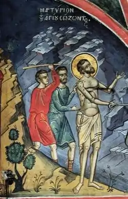 ![]() Мучение Созонта. Тзортзи (Зорзис) Фука. Фреска. Афон. монастырь Дионисиат. 1547 год. | |