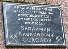 - На здании Института геологии Карельского научного центра РАН в Петрозаводске установлена мемориальная доска.