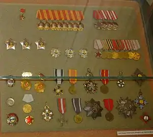 - три ордена Красного Знамени[3] (28.02.1928, 3.11.1944, 20.06.1949);