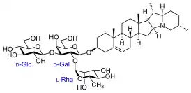 Агликон представлен стероидным алкалоидом соланидином, углеводная часть — остатками трёх моносахаридов (глюкозы, галактозы, рамнозы).
