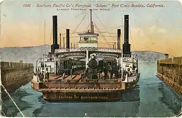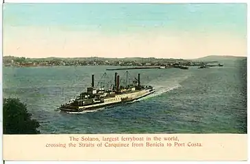 Железнодорожный паром, названный в честь калифорнийского округа Солано, был построен в 1879 году в Окленде, штат Калифорния. Имея в длину 130 метров, став самым большим паромом такого типа в мире, и вторым по длине деревянным судном после шхуны «Вайоминг».