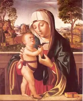 - Davies, 292; Ettore Modigliani, A Madonna by Antonio da Solario, and the Frescoes of SS. Severino e Sosio at Naples, The Burlington Magazine, Vol. 11, No. 54 (Sep., 1907), pp. 376—377+381-382, JSTOR goes into some of the issues.