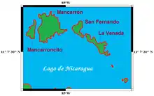 Расположен на юге озера Никарагуа, в департаменте Сан-Хуан. Происхождение островов являются вулканическим. Архипелаг состоит из четырех крупных островов, каждый в несколько километров в поперечнике, с запада на восток — Манкаронсито (Mancarroncito), Манкарон (Mancarrón), Сан-Фернандо (San Fernando), Ла-Венада (La Venada), и ещё включает в себя примерно 32 мелких острова.