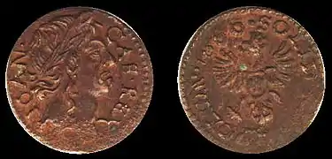 В 1650 году при короле Яне Казимире бит первый медный солид = 1/4 гроша (77 штук из краковской гривны, вес монеты 2,6 г). С 1659 года в течение десятилетия чеканились новые медные солиды (так называемые «боратинки») = 1/3 гроша, но из расчёта 150 штук из гривны (весом 1,35 г). Их было выпущено огромное количество.