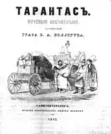 1844 год ознаменовался для Соллогуба сдвигом в деле опубликования «Тарантаса». Так, в конце сентября того года он написал Жуковскому: «Тарантас проехал через цензуру, хотя и задел немного колесами»[64][57]. В октябре А. В. Никитенко, первоначально выдвинувший на рассмотрение цензурного комитета ряд фрагментов произведения, тем не менее выдал цензурное разрешение. Повесть под названием «Тарантас. Путевые впечатления» вышла в 1845 году в Петербурге в виде роскошного издания тиражом 5000 экземпляров. Выход книги сопровождался большим успехом среди читателей. Что касается критики, то здесь разгорелась полемика, во многом из-за сложности авторской позиции[57]. Однако разноречивость отзывов не повлияла на успех книги и укрепила литературный авторитет писателя[65]