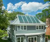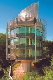Современное воплощение солнечной архитектуры ознаменовалось использованием фотовольтаики для практических целей преобразования солнечного света в электрическую энергию.