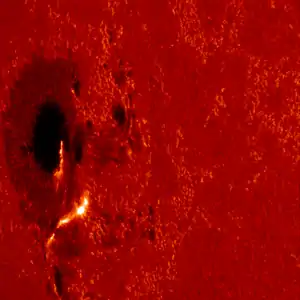 Под действием магнитного поля происходит неожиданное сжатие солнечной плазмы, образуется плазменный жгут или лента (могут достигать в длину десятков или сотен тысяч километров), что приводит к взрыву. Солнечная плазма в этой области может нагреваться до температур порядка 10 млн К. Возрастает кинетическая энергия выбросов веществ, движущихся в короне и уходящих в межпланетное пространство со скоростями до 1000 км/с. Получают дополнительную энергию и значительно ускоряются потоки электронов, протонов и других заряженных частиц. Усиливается оптическое, рентгеновское, гамма- и радиоизлучение.[1]