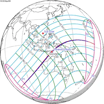 | Солнечное затмение 20 апреля 2023 года | |||||||