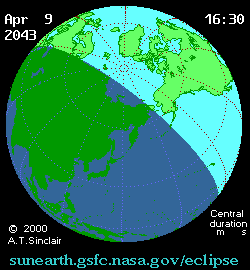 ![]() Солнечное затмение 9 апреля 2043 года | |||||||