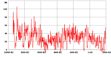 Количество пятен на Солнце (и связанное с ним число Вольфа) — один из главных показателей солнечной магнитной активности.