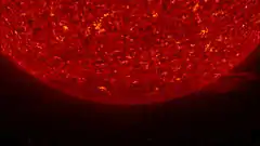 Снимок солнца в условном цвете, ультрафиолетовый спектр (длина волны 30,4 нм), сделан в 2010 году | |||