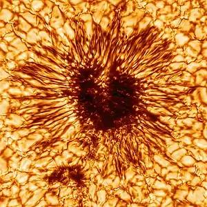 Снимок солнца в видимом свете с солнечными пятнами и потемнением к краю, сделан в 2013 году | |||