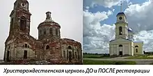 В 1848 же году в Ярославке, помещ. Михаилом Ивановичем Давыдовским построена каменная Христорождественская церковь с приделами в честь пр. Пелагии и мч. Дарии. Одновременно с церковью построена была и колокольня. В 1875 г. церковь украшена стенным писанием, в 1876 г. в настоящей церкви устроен новый иконостас, а бывшие в прежнем иконостасе местные иконы возобновлены, в 1881 г. наружные стены церкви и колокольни, посредством штукатурки, приведены в приличный вид; находящаяся вокруг церкви каменная ограда с каменною же усыпальницей устроена в 1882 г.
