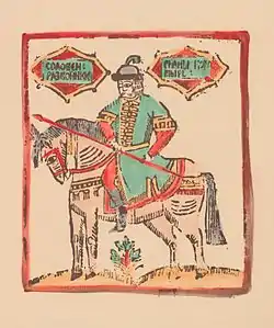 ![]() Сильный богатырь Соловей Разбойник. Лубок. 1700-е годы | |