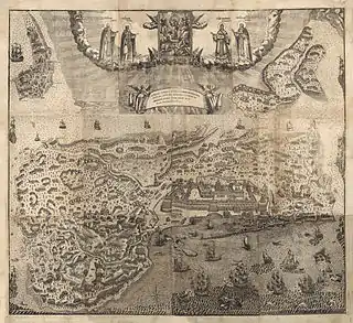 В XVII веке Соловецкий монастырь участвовал в военных действиях, а также использовался как место ссылки заключённых, главным образом, по политическим мотивам. 5 августа 1621 года в Соловецкий монастырь пришла грамота царя Михаила Фёдоровича, в которой говорилось, что поскольку Соловки «место украинное» (окраинное), монастырь необходимо укрепить, соорудить каменные жилые для служилых людей и надлежало «ров около Соловецкого города, который почат выкладывати каменем… докопати, и каменем выстлати и чеснок побити»[9][10].