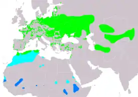 ![]() Только гнездится Маршруты миграции Районы миграции |