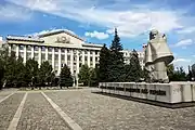 Памятник "Мужества, верности, героизму сотрудников МВД Украины" с видом на Национальную академию внутренних дел