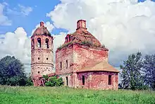 В 1785 году с разрешения преосвященного Феофилакта, епископа Переславского, вместо деревянных церквей устроен существующий ныне каменный храм с такою же колокольнею. Престолов в этом храме три: в холодном в честь Покрова Пресвятой Богородицы, в приделе тёплом во имя святого великомученика Александра Римского и в честь Казанской иконы Пресвятой Богородицы.[4]