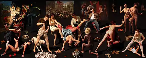 Фото-картины этой серии представляют собой сценическое пространство с темным фоном, заполненное актёрами-персонажами, будто только что пришедшими с современных парижских улиц, смешанные с обнаженными моделями, животными, элементами натюрморта и бесконечным количеством мелких деталей, покрывающих полы и стены сценического пространства.