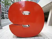 В качестве ответа на жалобы, что наклонные отражающие стены здания выявляют непривлекательные стороны соседних исторических зданий, которые ранее были затенены, в 1979 г. была спроектирована большая красная скульптура цифры 9 (номер дома по адресу) перед зданием. Суть скульптуры заключалась в том, чтобы отвлечь глаза прохожих от этих неприглядных стен. Скульптура была спроектирована художником-графиком Иваном Чермаевым. Она выполнена из стали толщиной свыше 1 см и весит около полутора тонн[10].