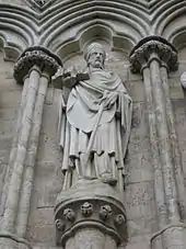 Всего на фасаде собора 130 ниш, 73 из которых заняты скульптурами. Ряды этих ниш опоясывают весь собор. На западном фасаде в пяти ярусах (за исключением мандорлы) представлены ангелы и архангелы, ветхозаветные патриархи, апостолы и евангелисты, мученики, доктора и философы Церкви, и в самом нижнем ярусе знать, священники и миряне. Только семь скульптур относятся к XIV веку, большинство было изготовлено в викторианскую эпоху, и несколько современных.