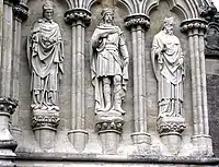 - Уильям Длинный Меч, 3-й граф Солсбери[31] (ок. 1165—1226) единокровный брат Иоанна Безземельного, незаконнорожденный сын Генриха II, первый погребённый в соборе[32]