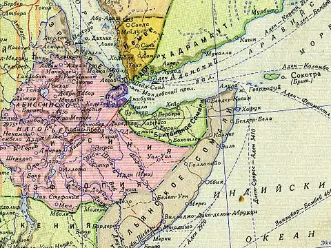 В конце XIX века Британская империя, заключив соглашения с кланами Хабр Аваль, Гархаджис, Хабр Джело, Варсангели, Исса и Гадабурси, учредила в регионе свой протекторат. Дервиши, возглавляемые Мохаммедом Абдилле Хасаном, выступили против заключённых между британцами и султанами соглашений, и в начале XX века провели несколько последовательных войн против британских колонистов. Британские войска смогли окончательно победить дервишей лишь в ходе кампании 1920 года.