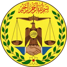 Девиз: «(араб.)لا إله إلا الله محمد رسول الله Lā ilāhā illā-llāhu; muhammadun rasūlu-llāhi («Нет Бога, кроме Аллаха, а Мухаммед — посланник Аллаха») Также девизом является фраза «Правосудие, Мир, Свобода, Демократия и Успех для всех»» |