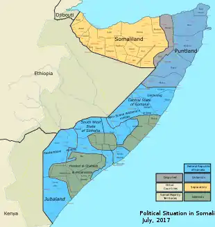 Ранее территория Сомалиленда называлась Британское Сомали (с 1887 года), в 1960 году Сомали получила независимость, когда объединились две бывшие колонии — Итальянское Сомали и Британское Сомали. При этом отдельного государства Сомалиленд де-факто так и не появилось (хотя формально Государство Сомалиленд существовало с 26 июня по 1 июля 1960 года независимо от других стран), а референдума среди жителей колонии по статусу не проводилось, что, по мнению некоторых политологов, говорит о нарушении статьи 2