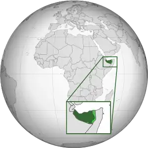 ![]() Сомалиленд на карте мира. Светло-зелёным обозначена заявленная территория, не контролируемая Сомалилендом |