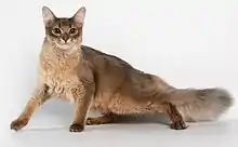 Сомалийская кошка или просто сомали — длинношёрстная кошка, произошедшая от абиссинской. Откуда у чистопородных абиссинцев взялась длинная шерсть, точно неизвестно. Ответов на этот вопрос может быть два: спонтанная (самопроизвольная) мутация или результат метизации, скрещивания с какими-то длинношёрстными кошками. Историки породы «вычислили» английскую заводчицу Дженет Робертсон, в конце 40-х годов экспортировавшую своих абиссинских кошек в Новую Зеландию, Австралию, США и Канаду. Именно в трех последних странах (предположительно среди потомков робертсоновских кошек) практически одновременно и независимо друг от друга появились длинношёрстные котята. Абиссинки с длинной шерстью стали появляться в разведении достаточно регулярно, однако поначалу заводчики в борьбе за чистоту породы их безжалостно отбраковывали. Пушистых котят скрывали и раздаривали без документов, производителей, дающих длинношёрстных котят, старались исключать из племенной работы. Впервые длинношёрстный абиссинец (заводчицы Мэри Мэйлинг) был показан на местной кошачьей выставке в Канаде в 1963 году. Через пару лет порода приобрела современное название (это заслуга американской заводчицы Эвелин Мэгью, которая активно начала продвигать породу в Соединенных Штатах).
