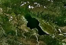 ![]() Вид на озеро с южного берега летом 2016 года | |