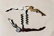 - Нож сомелье – складной штопор с выдвижным упором и миниатюрным ножом для снятия капсулы с бутылки.