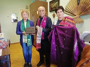 Сонгке́т - это тип традиционной тканой ткани индонезийского происхождения, происхождение которой происходит с острова Суматра.[1][2][3][4][5][6][7][8][9] Сонгкет относится к семейству парчовых тканей. Сонгкет сплетен вручную из золотых и серебряных нитей. Металлические металлические нити, сотканные на тканевом фоне, создают эффект блестящего блеска. Тканевые материалы, обычно используемые при производстве сонгкетов, включают шелк, хлопок и шелк-хлопок.