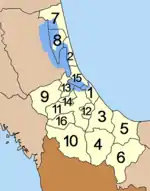 | 6 | Сабайой | 852,8 | 63 496 | 14 | Бангклам | 147,8 | 27 392 |