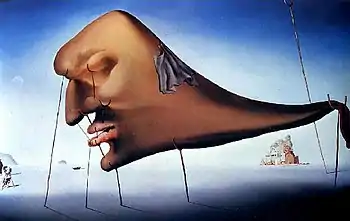 На этой картине Дали изобразил большую и мягкую голову с отсутствующим телом. Спящему, олицетворяющему сон, необходимо множество подпорок, которые поддерживают голову и сохраняют черты лица. Подпорки говорят о хрупкости реальности, — даже собаке, нарисованной в левом нижнем углу картины, необходима подпорка, чтобы не упасть на землю. Голубой цвет картины усиливает обособленность от рационального мира.