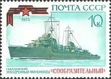 В 1973 году в СССР были выпущены почтовая марка и карточка для картмаксимума с изображением эсминца.