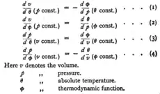 и четвёртое соотношение Максвелла[19][20][21] для смешанных производных энергии Гиббса: