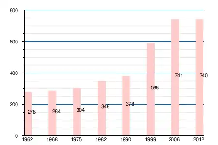 | 1962 | 1968 | 1975 | 1982 | 1990 | 1999 | 2004 | 2006 | 2008 | 2009 | 2011 | 2012 |