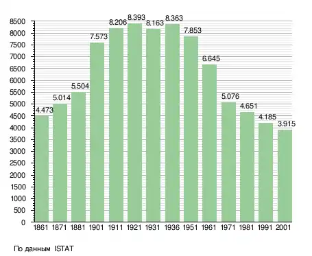 Население составляет 3955 человек (2008 г.), плотность населения составляет 23 чел./км². Занимает площадь 175 км². Почтовый индекс — 58010. Телефонный код — 0564.