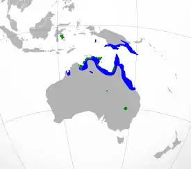 Ареал сорочьей цапли — водно-болотные угодья тропических районов северного побережья Австралии, некоторые острова Уоллесии и Новая Гвинея. Встречается также на пресноводных водоёмах, заболоченных равнинах и мангровых лесах.[2]
