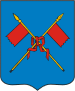 Сердобольский старый. В голубом поле на золотых древках красные знамена, положенные крестообразно.